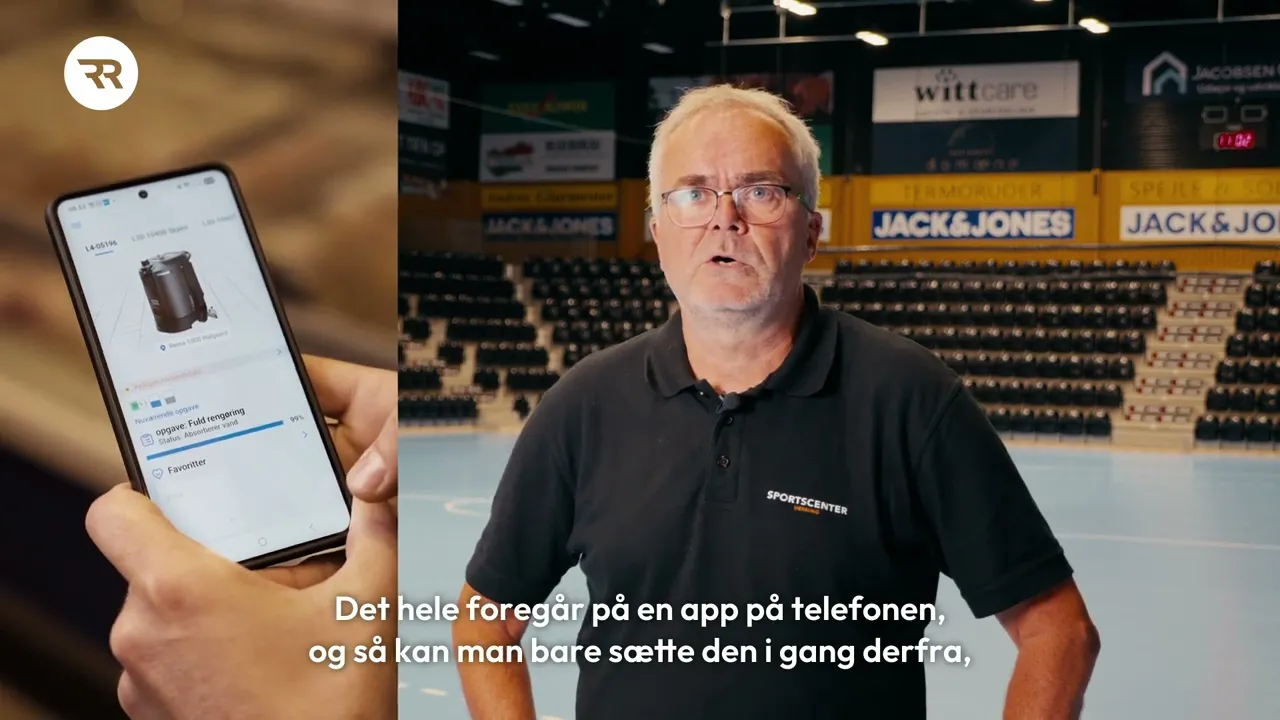 Vi har indtil videre, mest brugt robotten L50 i de haller hvor der spilles håndbold med harpiks. Ved brug af robotten i de haller, skåner vi nu personalet for at skulle opholde sig i lokaler hvor der er ubehagelige dampe af harpiks rens. Robotten klarer selv at lægge gulvet i blød i harpiks rens, og vaske det af igen og vi oplever at gulvet er helt ud lige så rent som tidligere. Så mens robotten klarer harpiksgulvene, kan vi udføre andre opgaver, hvilket har givet en mere effektiv drift. Ved større arrangementer hvor tiden er knap og de beskidte m2 er mange, er det en kæmpe hjælp for os også at kunne bruge den på gange, cafeområde og i andre haller.