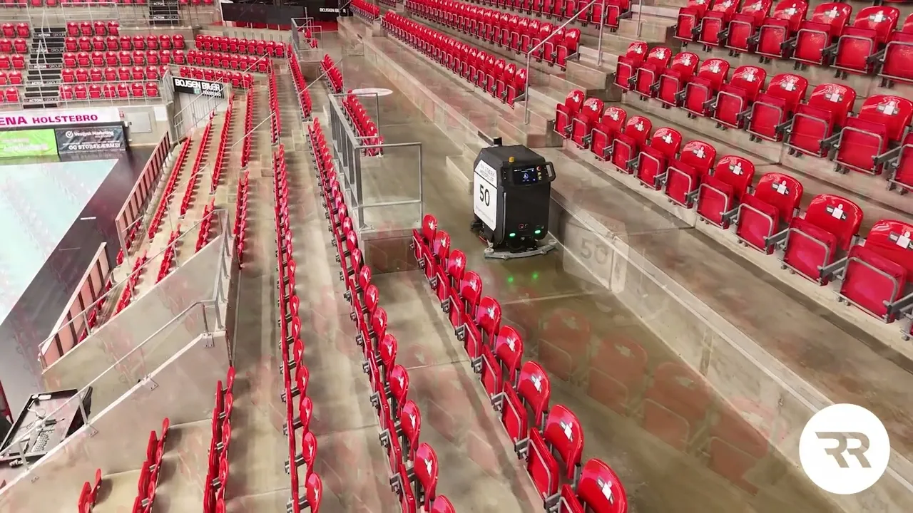 Vi har indtil videre, mest brugt robotten L50 i de haller hvor der spilles håndbold med harpiks. Ved brug af robotten i de haller, skåner vi nu personalet for at skulle opholde sig i lokaler hvor der er ubehagelige dampe af harpiks rens. Robotten klarer selv at lægge gulvet i blød i harpiks rens, og vaske det af igen og vi oplever at gulvet er helt ud lige så rent som tidligere. Så mens robotten klarer harpiksgulvene, kan vi udføre andre opgaver, hvilket har givet en mere effektiv drift. Ved større arrangementer hvor tiden er knap og de beskidte m2 er mange, er det en kæmpe hjælp for os også at kunne bruge den på gange, cafeområde og i andre haller.